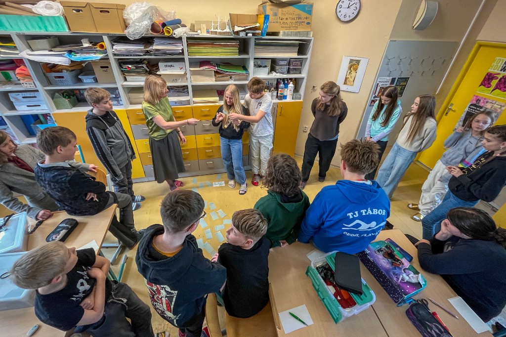 Zážitky pokračovaly v rámci týmových aktivit na několika stanovištích. Každý si mohl změřit sílu svého stisku, tvořit malůvky pod UV světlem nebo sledovat fascinující výboje Teslova transformátoru. Velkým lákadlem byl také pohled do světa termokamer, které žákům ukázaly okolní prostředí v úplně jiných barvách. Děkujeme lektorům z Jihočeské univerzity za jejich skvělý přístup a inspirativní program, který nám ukázal, že věda může být i skvělá zábava.