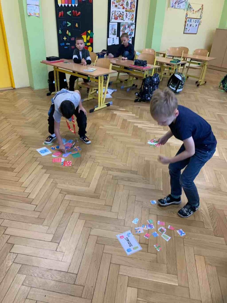 Angličtina se objevuje při pohybu, hrách, zpívání, výtvarných činnostech i jednoduchých pracovních listech. Žáci si tak osvojují základní slovní zásobu v konkrétních situacích – při poznávání okolního světa, počítání nebo kreslení.
