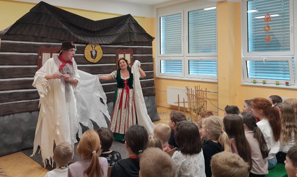 Do školní družiny zavítalo divadélko KOS s veselou pohádkou o strašidle Bubulíkovi. Bubulík byl zvláštní strašidlo – neuměl strašit, pořád se bál a často plakal. V hájovně se setkal s hajným Václavem a jeho ženou Marjánkou. Děti z publika Bubulíkovi pomáhaly a společně sledovaly, jak příběh dopadne. Nakonec všechno dobře skončilo – Bubulík zůstal u hajného a Marjánky jako jejich vymodlený syn. Představení bylo plné smíchu a děti si ho moc užily. Už teď se těšíme, až nás divadélko KOS opět navštíví.